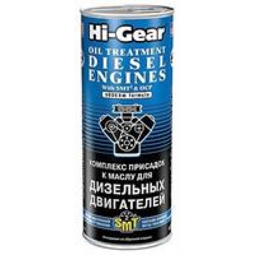 Комплекс суперприсадок к маслу. Предназначен для дизельных двигателей (содержит SMT2) Hi-Gear OIL TREATMENT ""DIESEL ENGINES"" with SMT2 & OCP. Предназначен для дизельных двигателей с различной степенью износа. Обеспечивает сбалансированное усиление и восстановление служебных свойств масла. Улучшает пуск двигателя, динамику и приемистость автомобиля. Уменьшает